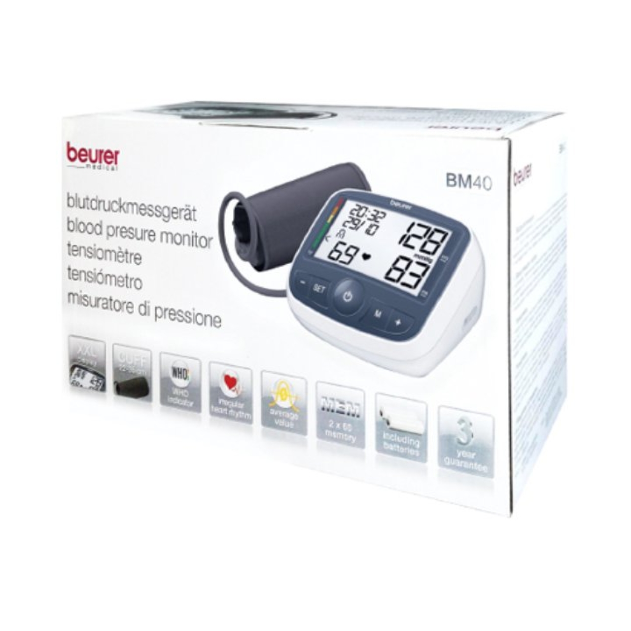 فشارسنج بازویی بیورر مدل BM40 ۲ سال گارانتی اندازه گیری کاملا اتوماتیک از بازو صفحه نمایش بزرگ ال سی دی ارسال سیگنال "خطا" برای مشاهده و تصحیح عملکرد دارای رده بندی مورد تایید انجمن جهان who دارای قابلیت تشخیص انحراف از معیار عملکرد استاندارد قلب آریتمی محصول رده بندی پزشکان دارای جایگاه حافظه مجزای :دو کاربره هر کاربر 60 حافظه مناسب دور بازوی 22 تا 35 سانتی متر دارای آدابتور دارای عملکرد خاموشی خودکار : جلوگیری از اتلاف انرژی دارای عملکرد باتری و کیف حمل محصول به انضمام آدابتور دارای نمایشگر ویژه نمایش عمر باتری