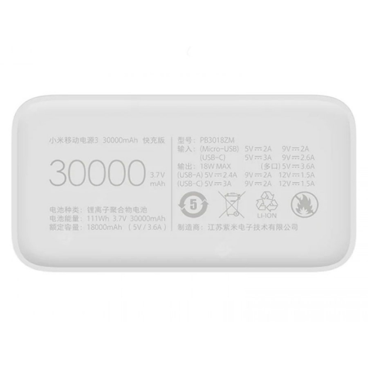 پاور بانک شارژ سریع شیائومی PB3018ZM 30000MAh شیائومی از پاوربانک با ظرفیت بالا خود رونمایی کرد. پاور بانک دارای قابلیت شارژ سریع است. شارژ قابل حمل جدید شیائومی دارای 30000 میلی آمپر ساعت است. پاوربانک PB3018ZM از پلاستیک پلی کربنات نسوز+ABS سازگار با محیط زیست ساخته شده است و دارای جلای مات است. مهمترین ویژگی این پاوربانک پشتیبانی از شارژ سریع دو طرفه است ، بدین معنی که پاوربانک نه تنها دستگاه را سریع شارژ می کند ، بلکه می تواند سریع شارژ شود. مهمترین ویژگی این پاوربانک پشتیبانی از شارژ سریع دو طرفه است ، بدین معنی که پاوربانک نه تنها دستگاه را سریع شارژ می کند ، بلکه می تواند سریع شارژ شود. ظرفیت بالا به یک سفر طولانی بروید و می تواند تمام گوشی ها و تبلت های خود را شارژ کنید. PB3018ZM دارای یک باتری عظیم 30000 میلی آمپر ساعتی است که می تواند دستگاه های شما را برای روزها تغذیه کند. این پاور بانکتوانایی فول شارژ کردن گوشیMi 10شیائومی تا 4.5 بار،Redmi K30 Proتا 4.5 بار و گوشی آیفونSEبیش از 10 بار دارد. چند پورت ، چند دستگاه 2 پورت USB-A و 1 پورت ورودی/خروجی USB-C برای خروجی روی این پاوربانک 30000 وجود دارد. شما می توانید حداکثر سه دستگاه را همزمان شارژ کنید. به تلفن ، دوربین و تبلت شما شارژ می دهد. شارژ سریع همه کاره این پاور بانک از شارژ سریع تا 18 وات پشتیبانی می کند. ولتاژ و شدت جریان خروجی پورت های یو اس بی در حالت استفاده از دو پورت یا مولتی پورت5V-3.6A و ولتاژ و شدت جریان خروجی پورت یو اس بی تک پورت 5V-2.4A , 9V-2A , 12V-1.5A و همچنین ولتاژ و شدت جریان خروجی پورت تایپ سی 6V-3A , 9V-2A , 12V-1.5A است. قابلیت شارژ هندزفری و اسمارت بند می توانید هدفون و یا دستبندهای هوشمند خود رانیز با این پاوربانک شارژ کنید. حالت ویژه جریان کم (low-power) برای شارژ وسایل کوچک مانند هدفون بی سیم و ساعت هوشمند است و برای اینکار کافیست دو بار دکمه پاور را فشار دهید. محافظت های متعدد برای شما و دستگاه های شما این محافظت ها شامل گرم شدن بیش از حد ، اتصال کوتاه ، ولتاژ ورودی/قطب معکوس ، ولتاژ خروجی/جریان بیش از حد و اضافه شارژ/تخلیه بیش از حد باتری است که در این پاوربانک وجود دارد. تراشه هوشمند داخلی اکثر مارک های اصلی تلفن های هوشمند ، تبلت و سایر دستگاه های تلفن همراه شارژ USB را تشخیص داده و به طور بهینه شارژ می کند.