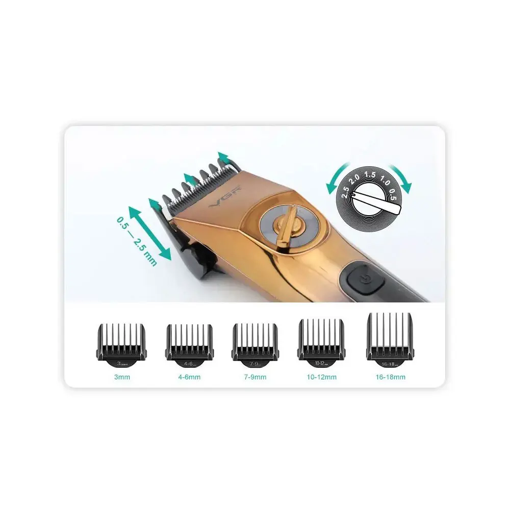 ماشین اصلاح موی سر و صورت وی جی آر مدل V-663 با قابلیت تنظیم اندازه اصلاح و تیغه هایی از جنس استیل ضد زنگ مناسب اصلاح موهای سر و صورت و فید نمودن و سایه زنی نیز بوده و با تکنولوژی برش مستقیم و بهره مندی از گواهی IPX6 ضد آب بودن، ماشین اصلاح مناسب آقایان مشکل پسند خواهد بود. این ماشین اصلاح دارای باتری 2000 میلی آمپری است که برای شارژ کامل نیازمند 3 ساعت شارژدهی است که امکان استفاده مداوم در 200 دقیقه را فراهم مینماید.