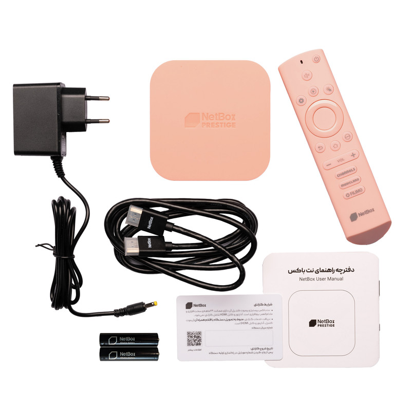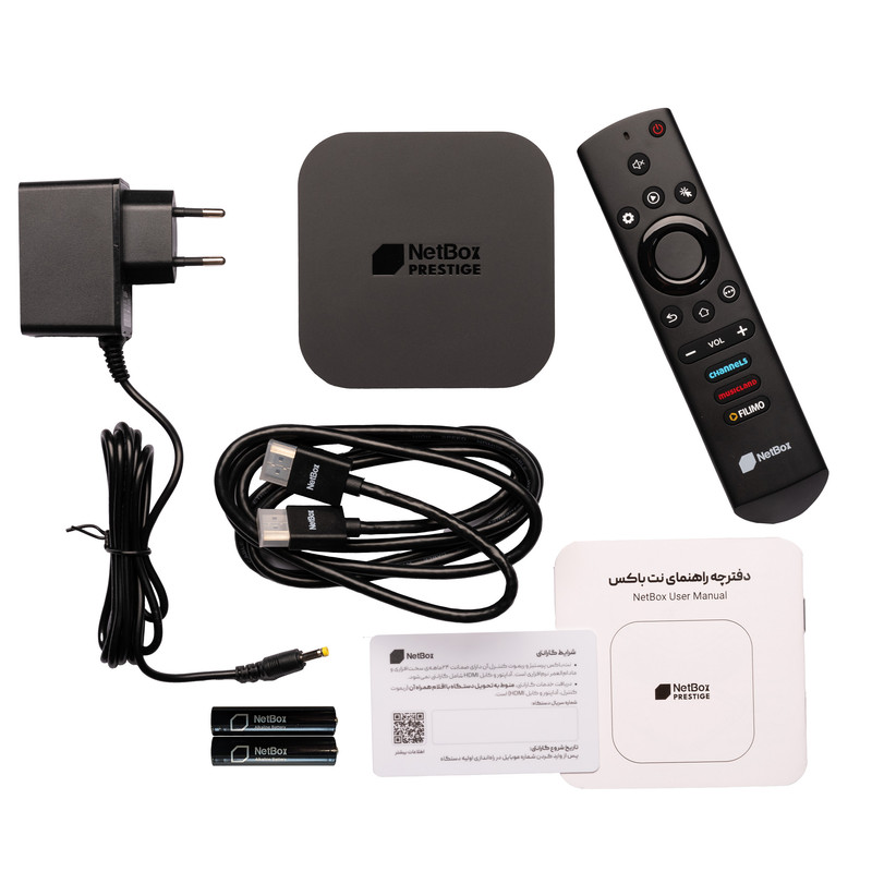 اندروید باکس نت باکس پرستیژ (Prestige) جدیدترین محصول نت باکس در سال 1404 دارای ویژگیهایی متفاوت از مدلهای قبلی با اندروید تی وی 14، 5 رنگ متنوع، سخت افزار بسیار قوی و رابط کاربری اختصاصی NetUI است. پردازنده 8 هستهای H728 نت باکس پرستیژ و رم 4GB LPDDR4 عامل اصلی برای این است که بتوانید خیلی راحت در میان منوها و اپلیکیشنهای نصب شده اندروید باکستان کاوش کنید، بدون مشکل فیلم ببینید، چندین برنامه را باز کنید و با هیچ کندی و لگی روبهرو نشوید. برای بازی کردن روی اندروید باکس هم میتوانید با خیال راحت روی نت باکس پرستیژ حساب کنید! ریموت کنترل بلوتوثی ژیروسکوپ دار این اندروید تی وی اجازه میدهد تا سنگینترین بازیهای مخصوص اندروید تی وی را هم بدون مشکل روی تلویزیونتان تجربه کنید! حافظه داخلی 32 گیگابایتی، USB 0.3، HDMI 2.0، بلوتوث BLE 5.0، پردازنده گرافیکی Mali-G57 MC1 800MHz، اترنت 1000Mbit و کیفیت تصویر 6K هم در کنار سرویسهای اختصاصی و رایگان فیلم لند، موزیک لند، کانال و نت استور از ویژگیهای منحصر به فرد این اندروید باکس بینقص نت باکس است.